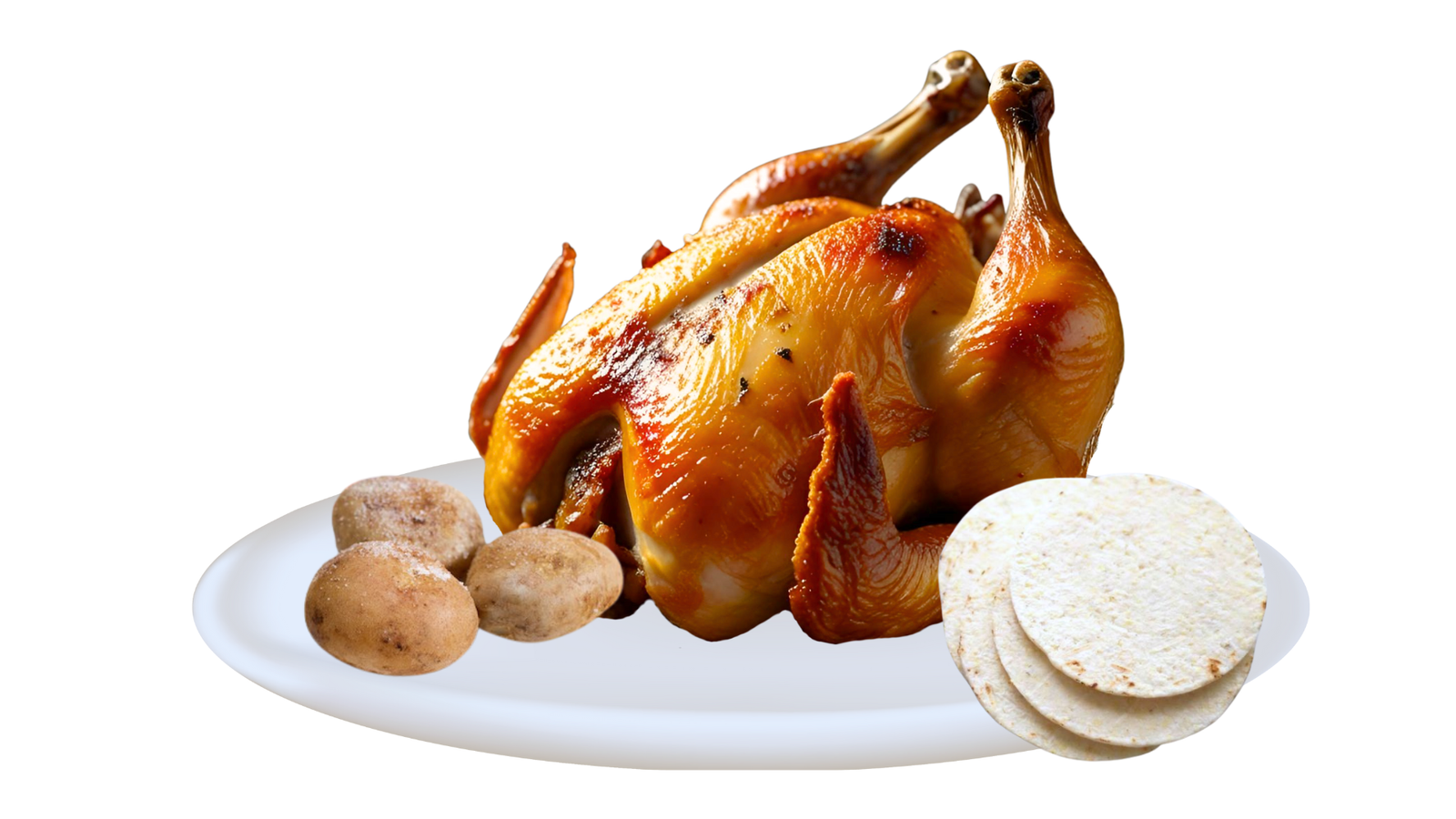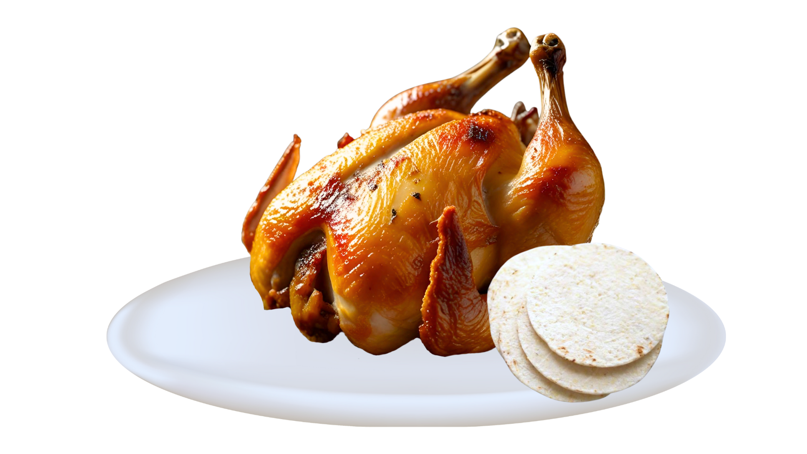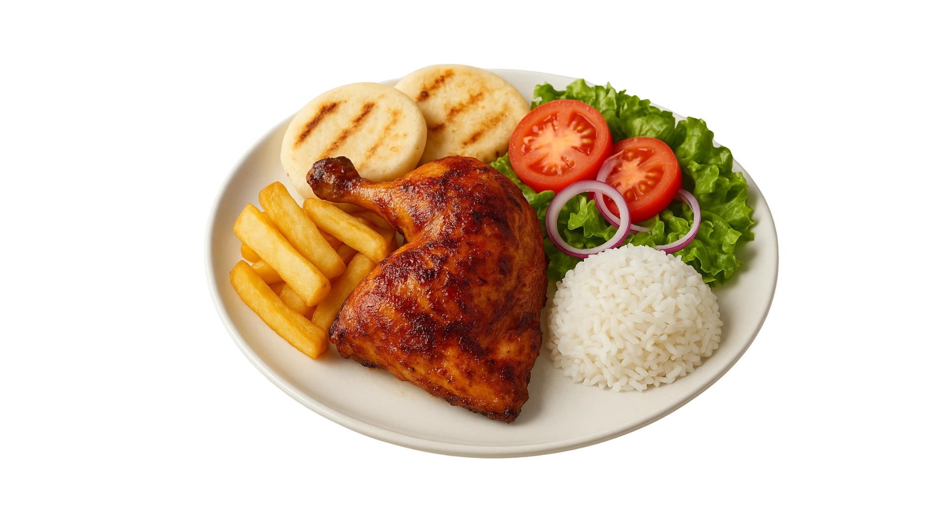 Pollo Asado con acompañamiento de 4 arepas